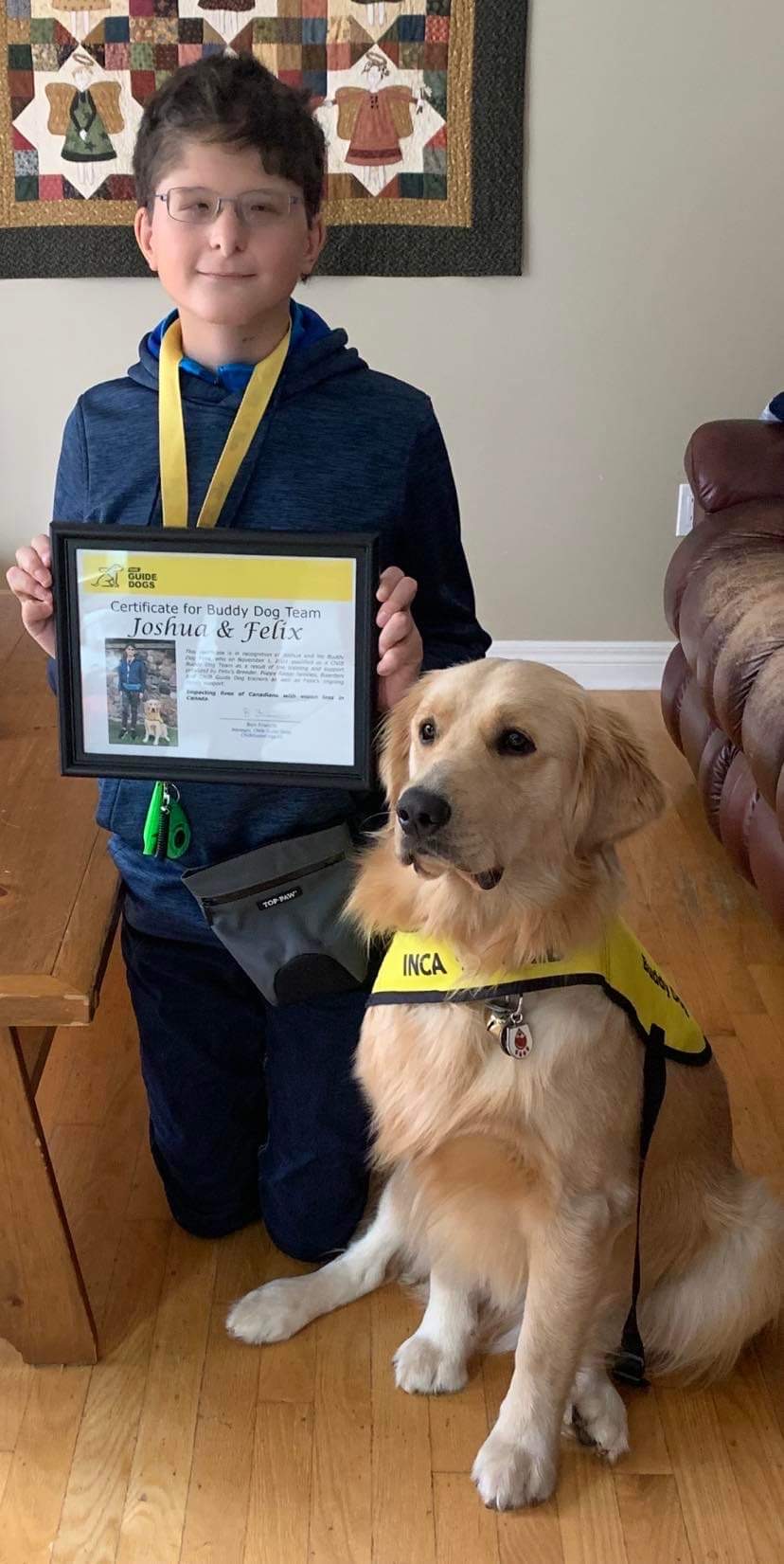 Joshua will be a graduate of the CNIB Buddy Dog Program in April 2022, and we’re looking forward to sharing the special moment with Josh and Felix. Since having Felix in our lives we have come to know his other siblings and his breeder. So many people are involved from start to finish, breeders, puppy raisers, puppy trainers, many others, donations to help get Felix where he is today and as a whole family we are forever grateful to have been given this opportunity.